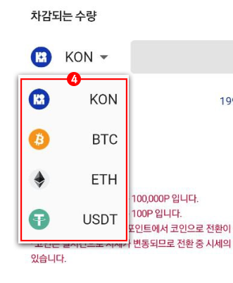 콘페이를 활용한 POINT 전환 시스템 구축콘스토어에서 포인트를 콘페이로 충전하여 '응모하기' 기능을 통해 최대 99% 할인받는 신개념 쇼핑방식입니다. 콘페이 내에 보유 중인 가상자산으로 POINT를 전환하고 쇼핑을 시작하세요. 보너스 포인트포인트 충전 시 보너스 포인트 지급 중입니다. 더 많은 할인 혜택을 누리세요.